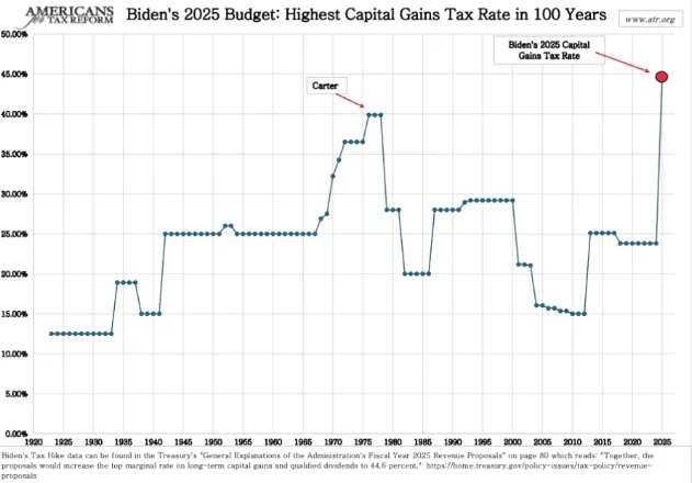 Para su presupuesto del año fiscal 2025, el Presidente Biden pretende casi duplicar el actual tipo impositivo sobre las plusvalías a largo plazo hasta el 39,6% para los inversores cuyas ganancias superen el millón de dólares anuales.