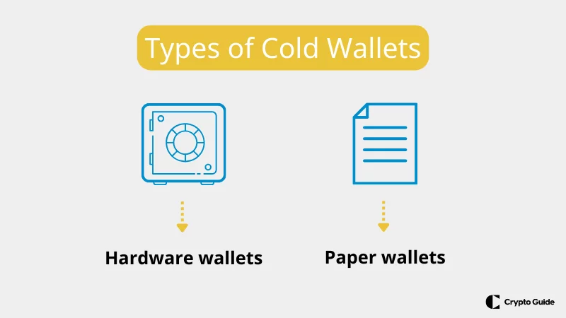 - Tipos de billeteras frías: Billeteras de hardware y de papel, con almacenamiento offline de claves privadas.