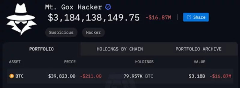 Sorprendentemente, los análisis forenses estiman actualmente que el hacker de Mt. Gox conserva en su poder 79.957 BTC, valorados en 3.180 millones de dólares.