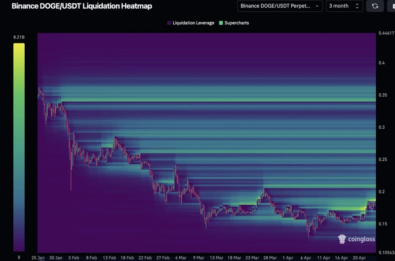 En los últimos meses, DOGE ha experimentado una tendencia bajista, cayendo desde alrededor de 0,44 $ hasta el rango de 0,15 $. Se han colocado muchas posiciones cortas entre 0,19 y 0,25 dólares, lo que ha creado bolsas de liquidez en el mercado. Si DOGE consigue superar el nivel de resistencia de 0,19 dólares, es probable que los vendedores en corto se apresuren a cubrir sus posiciones, lo que podría provocar una subida del precio hacia el rango de 0,22 a 0,25 dólares.
