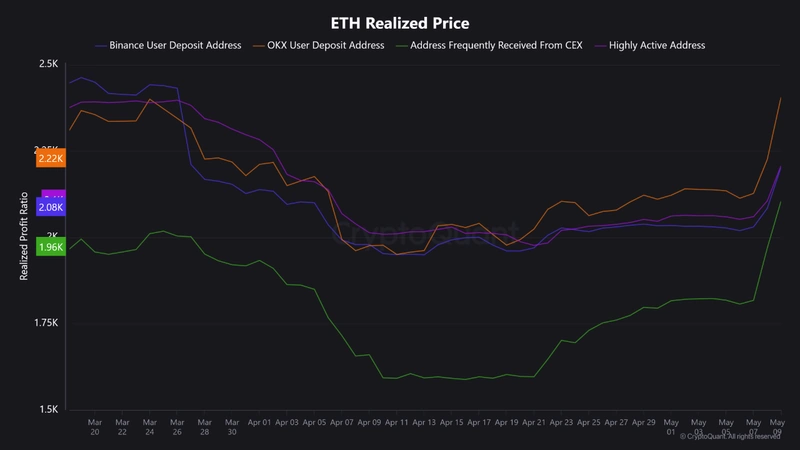 El analista de CryptoQuant Crazzyblockk destacó que el precio realizado de ETH para los titulares a largo plazo, concretamente los que operan con frecuencia en Binance, es de unos 1900 dólares. Y ahora, Ethereum no solo está por encima de ese umbral, sino que se ha mantenido ahí durante su reciente subida.