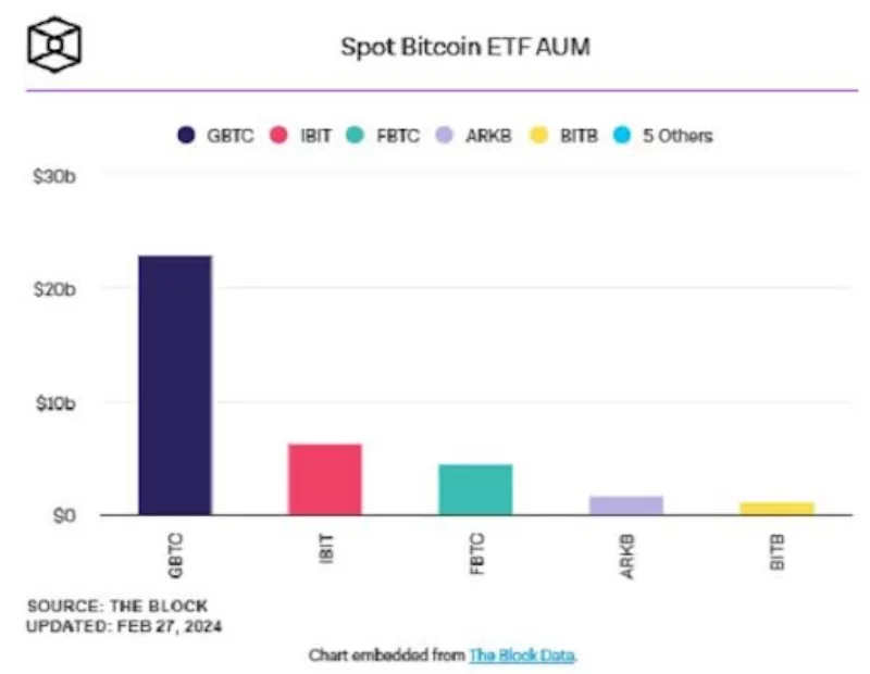 Por el contrario, los activos del fondo GBTC de Grayscale han experimentado un descenso significativo, desplomándose más de un 28%, de aproximadamente 619.000 BTC (35.000 millones de dólares) a 444.000 BTC (25.000 millones de dólares) desde el 11 de enero, según los datos de CoinGlass.