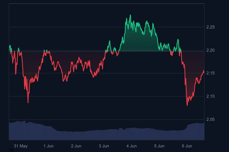 Sin embargo, el rebote desde este nivel sugiere un fuerte soporte en torno a la zona de 2,10 dólares, con un aumento de la actividad de los compradores, ya que el volumen de operaciones en 24 horas se disparó un 75 %, hasta alcanzar los 3460 millones de dólares.