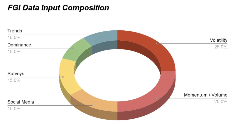 El Cryptostrategy y el Greed Index se basan en datos de cinco fuentes, según el sitio web.