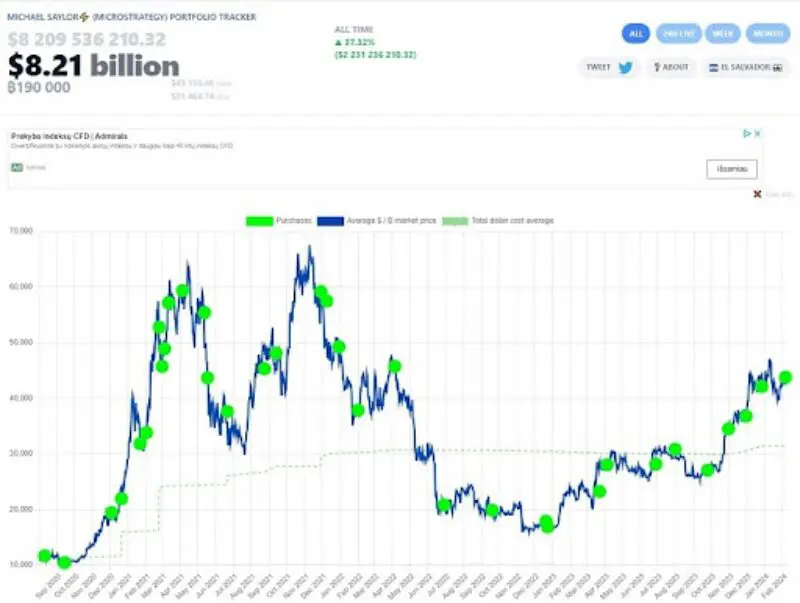 La incursión de la compañía en el mercado de Bitcoin comenzó en agosto de 2020, con una inversión inicial de 250 millones de dólares en BTC. Desde entonces, MicroStrategy ha aumentado constantemente sus reservas de Bitcoin, estableciendo una estrategia de reserva de tesorería que ha acumulado más de 190.000 bitcoins, valorados en más de 8.200 millones de dólares al valor de mercado actual.
