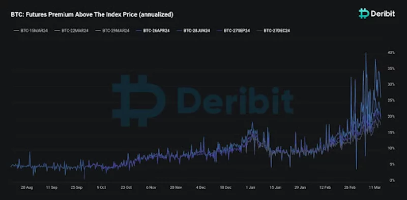Strijers destacó que la notable diferencia entre los precios al contado y de futuros del bitcoin es indicativa del sólido impulso del mercado, propulsado por la reciente aprobación de los ETF y las anticipaciones en torno al próximo acontecimiento de la reducción a la mitad del bitcoin.