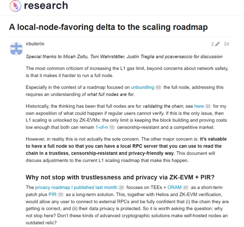 Ejecutar un nodo completo de Ethereum es un reto, ya que requiere almacenar una cantidad de datos cada vez mayor. A medida que Ethereum se expande y gestiona más transacciones, el mantenimiento de los nodos completos se vuelve más exigente, lo que puede poner en riesgo la descentralización de la red. Actualmente, muchos usuarios dependen de servicios RPC de terceros para acceder a los datos de Ethereum, lo que suscita preocupaciones sobre la confianza, la censura y la privacidad. Vitalik pretende resolver estos problemas replanteándose el funcionamiento de los nodos.
